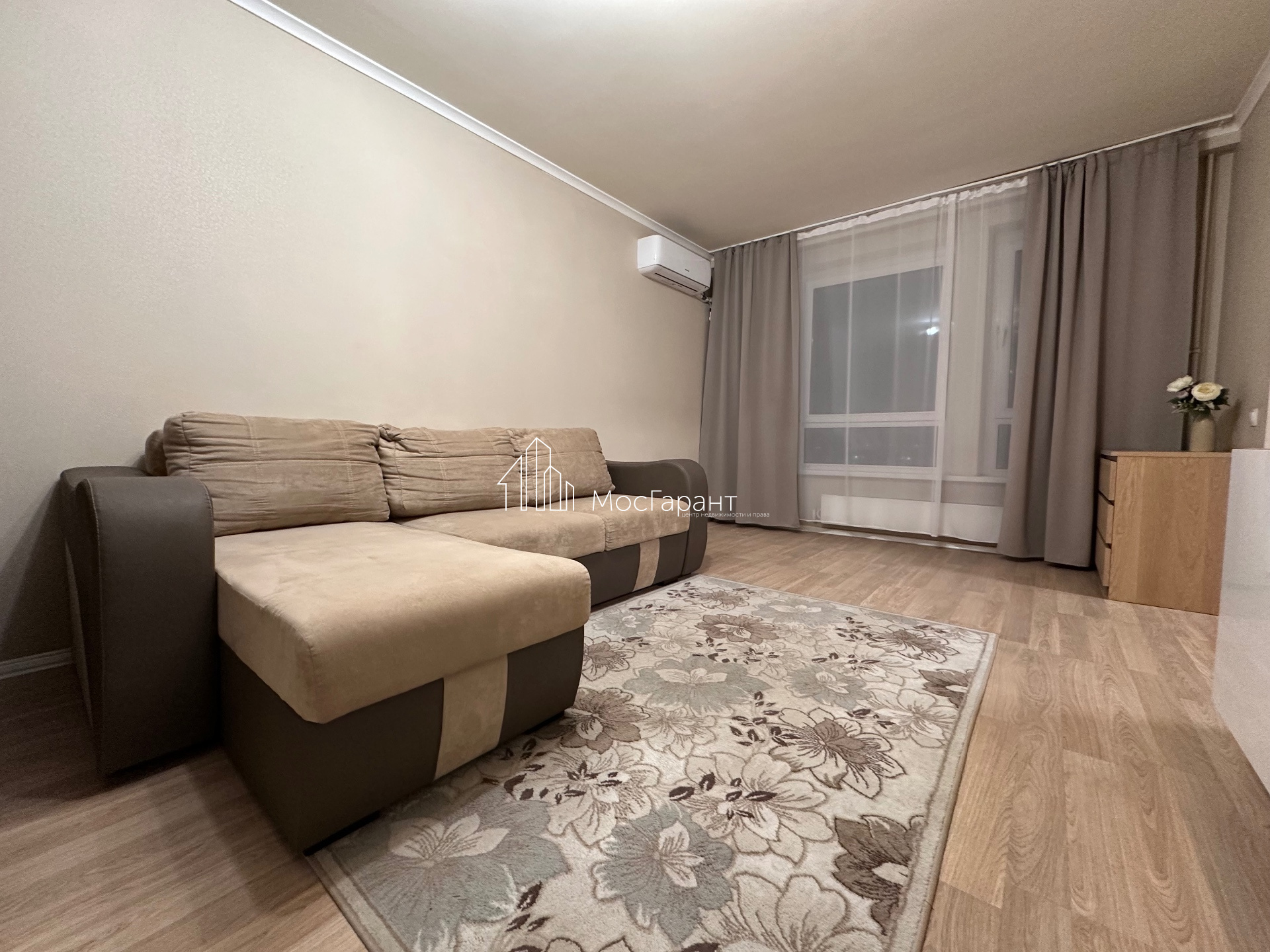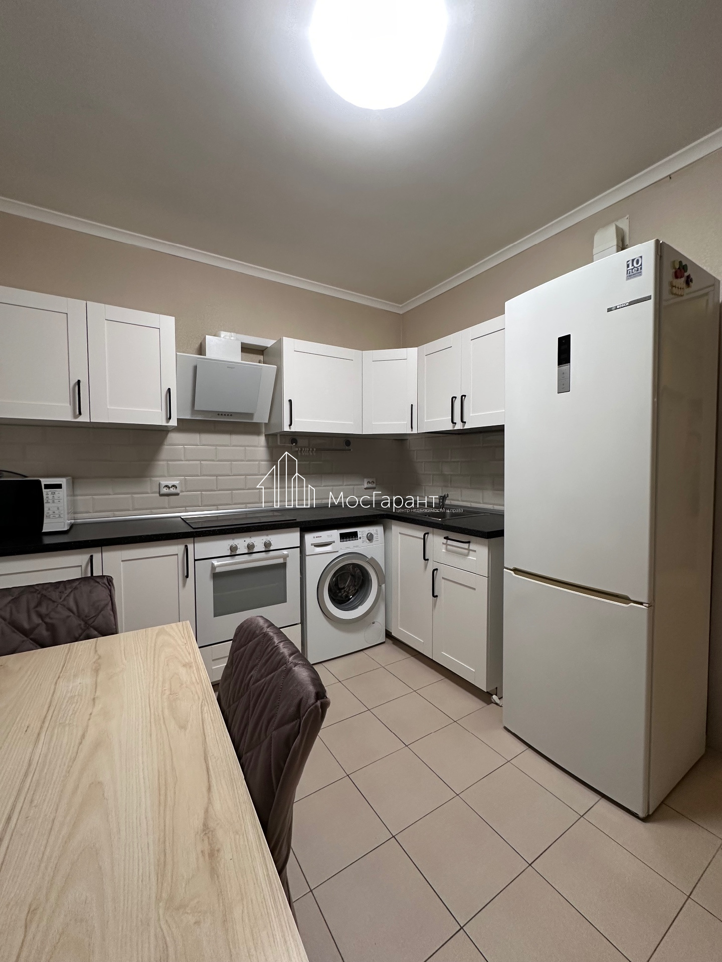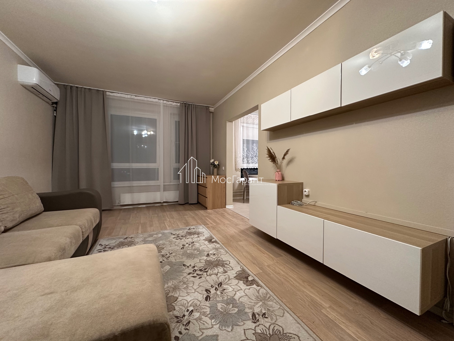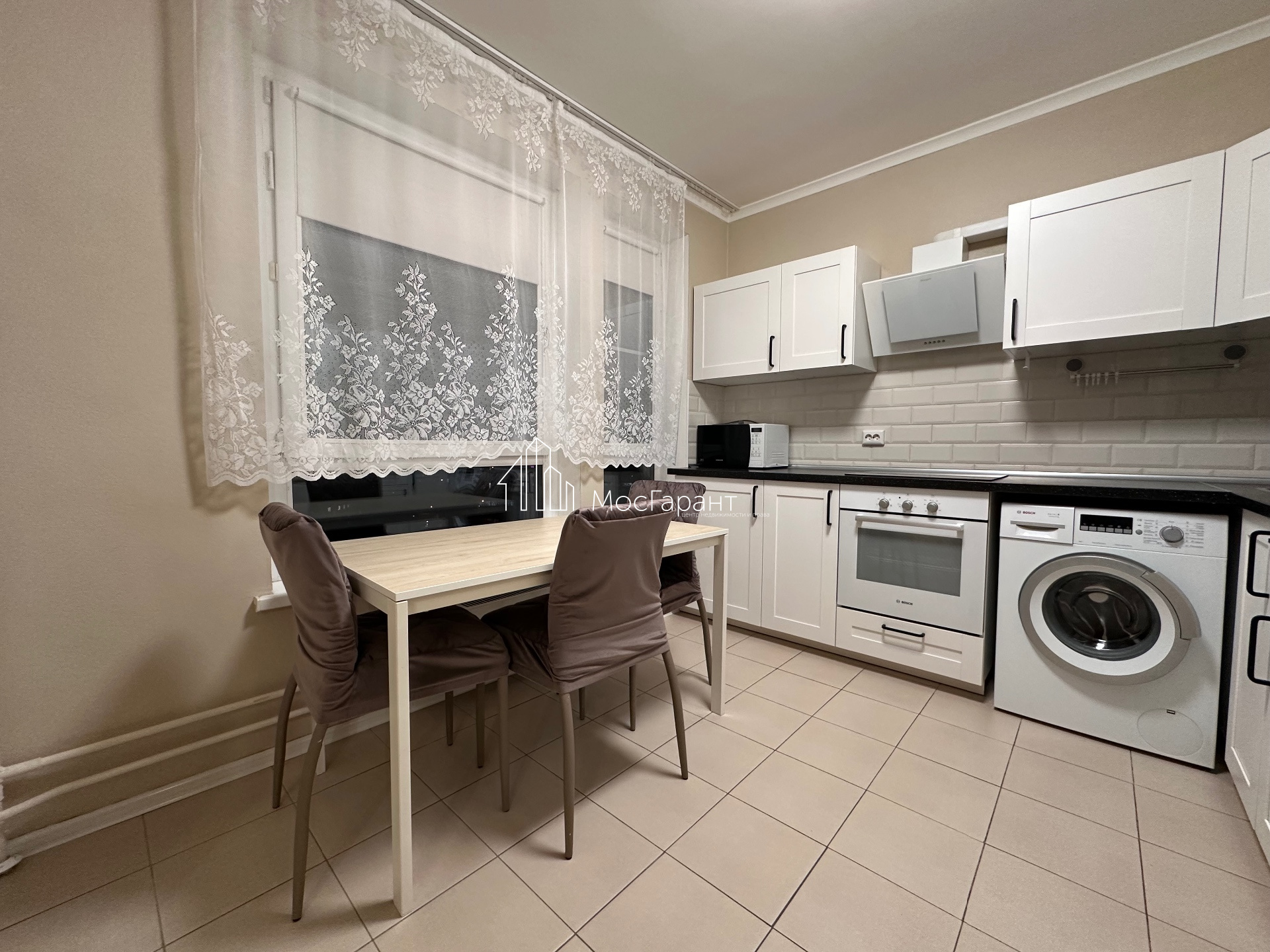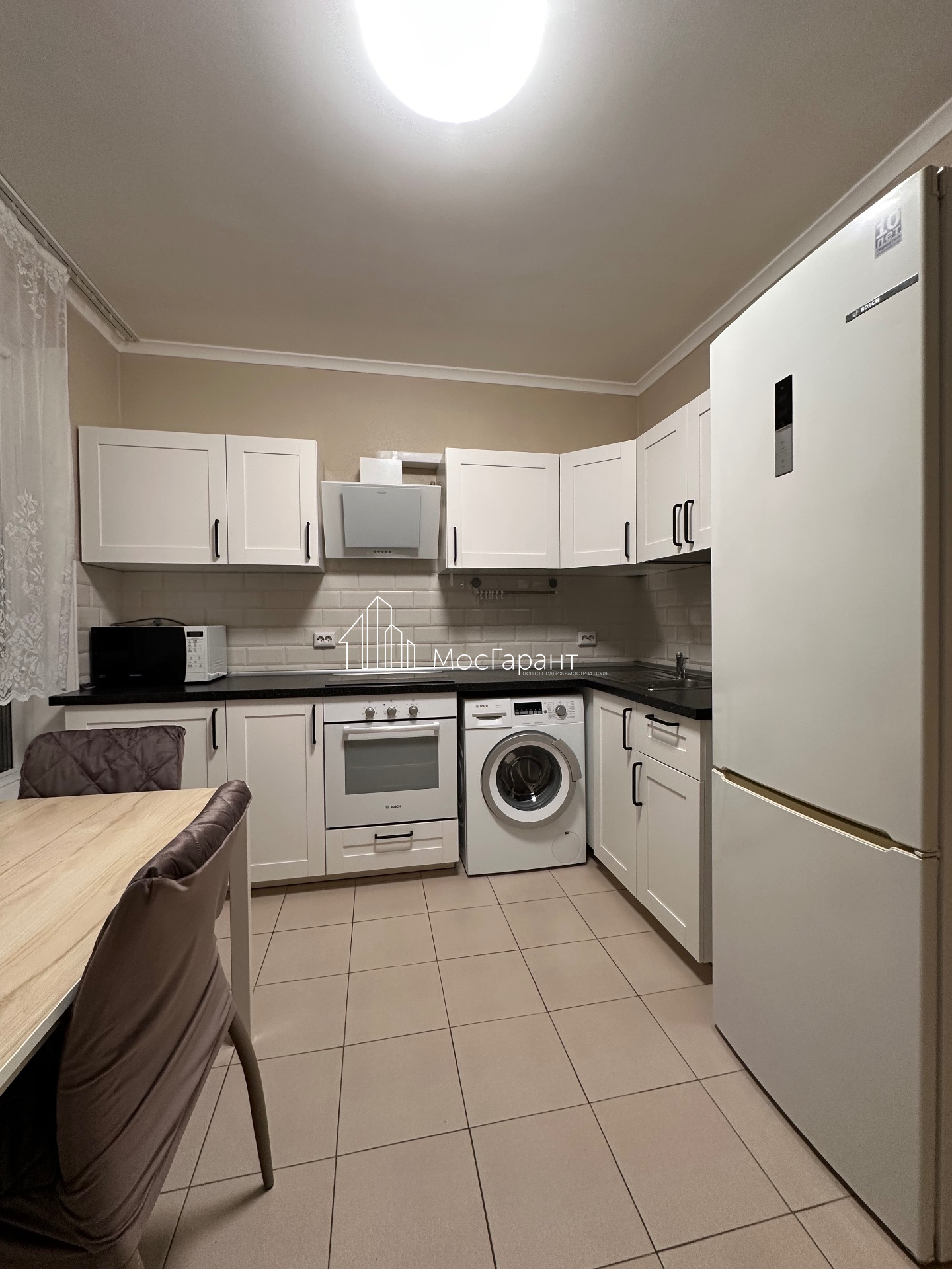 Большие окна, железная дверь, кухня, микроволновая печь, варочная панель, духовка, стиральная машина, холодильник (вся техника в отличном состоянии и качественная, марки БОШ), кондиционер, два больших шкафа, большой диван, сантехника и пр.