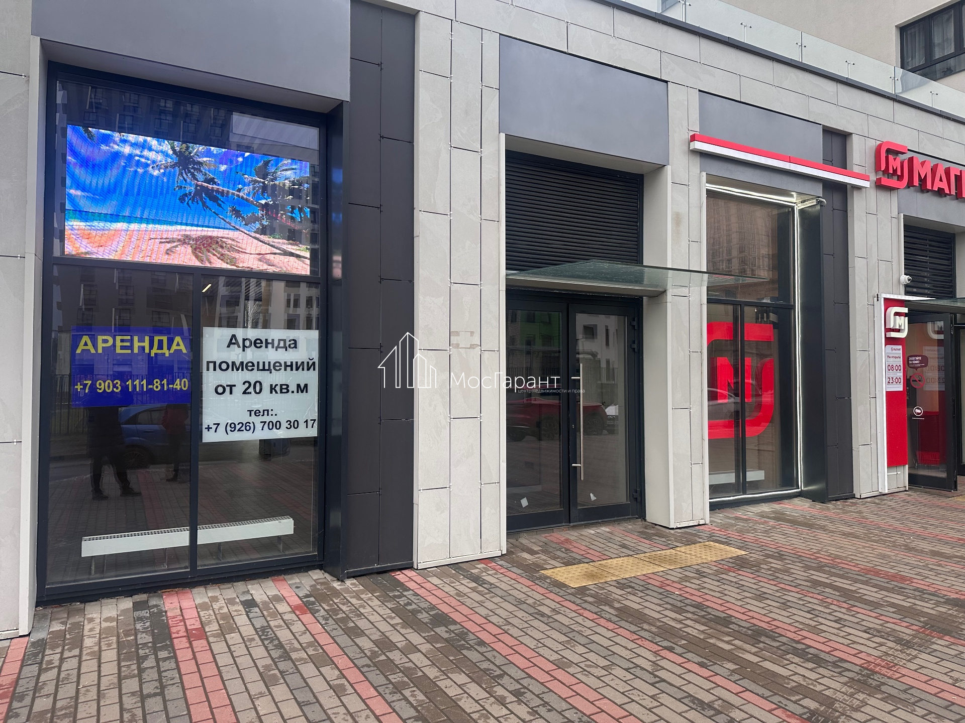 Отдельным преимуществом является рекламное табло, которое гарантированно привлечет внимание сотен потенциальных клиентов благодаря высокой проходимости и густонаселенности жилого комплекса.
